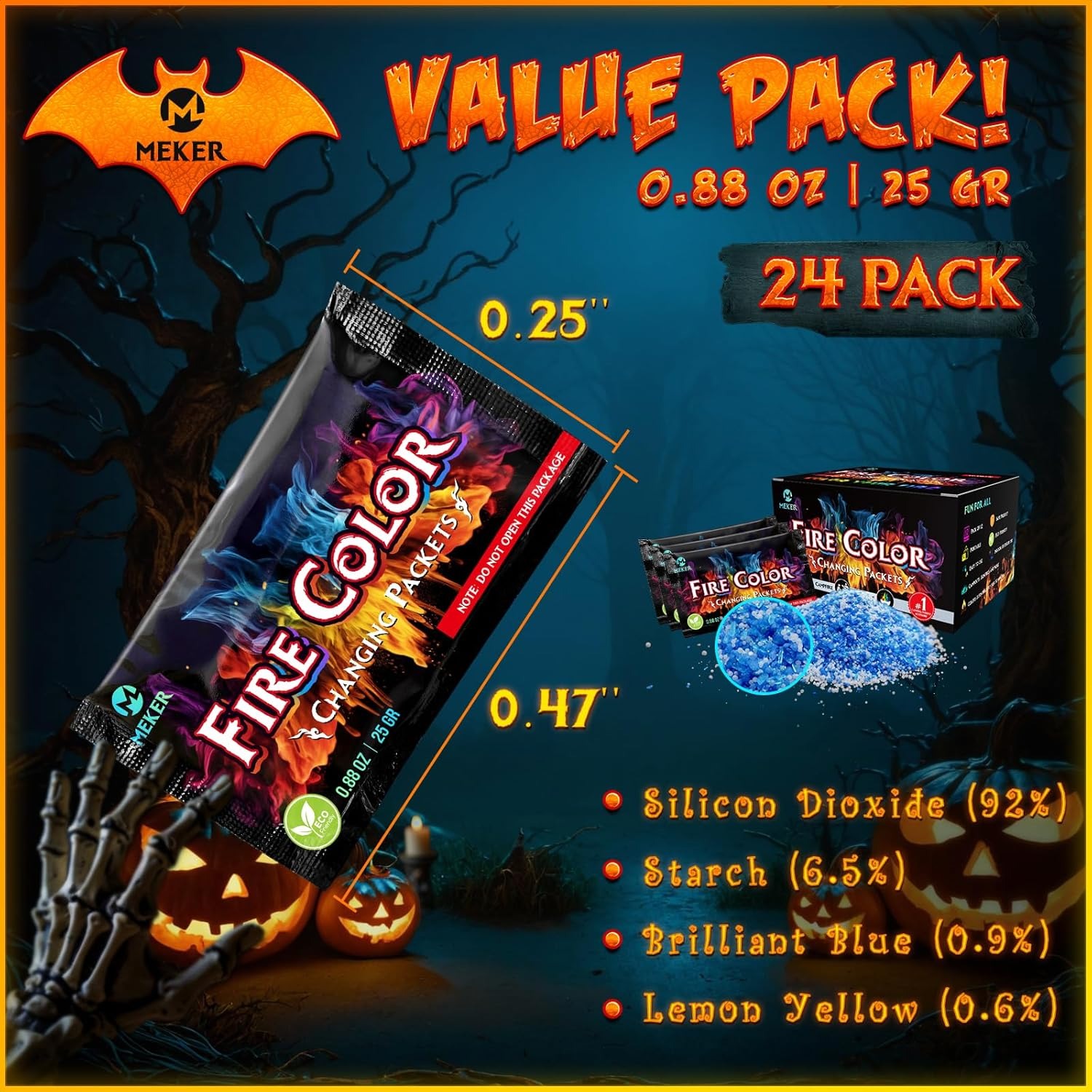 MEKER packets deliver vibrant blue, green, red, purple, and yellow flames that dramatically enhance any campfire, bonfire, or indoor fireplace. Expect a visible show within seconds and lasting magic for up to 30–50 minutes per packet pair/group.
